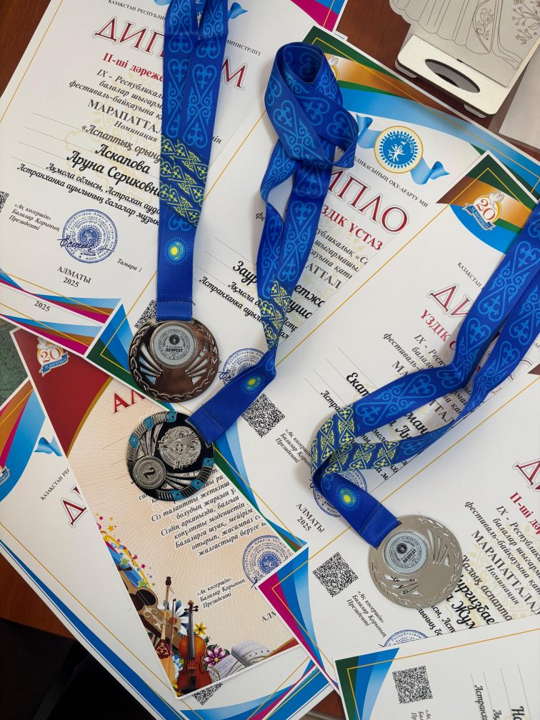 "Ақ көгершін "2025 жылғы 5 қыркүйектен 3 қазанға дейін "Ақ көгершін" балалар қорының 20 жылдығы аясында вокал, хореография, көркем оқу, халық аспаптары, аспаптық орындау номинациясы бойыншабалабақшалардың, жалпы білім беретін, музыкалық мектептердің, өнер мектептерінің балалары арасында " Серпер " балалар шығармашылығының IX –республикалық фестиваль-конкурсын өткізді,. Бүгін біздің қатысушылар өз грамоталары мен медальдарын алды! Байқауға қатысып, келесі нәтижелерін көрсетті: Тулетаева Аружан (вокал) - II дәрежелі Лауреат, Қыргизбаева Малика (қобыз) - II дәрежелі Лауреат, Аскапова Аруана (фортепиано) - II дәрежелі Лауреат, Каирова Аяна (домбыра) - II дәрежелі Лауреат, Удовиченко Марк - III дәрежелі Лауреат. Байқауға қатысушылар Астана қаласында өткен II кезеңде офлайн форматқа қатысып, жақсы нәтижелермен оралды. Балаларды жеңістерімен құттықтаймыз, шығармашылықтағы жарқын шыңдарға қол жеткізе берсін деп тілейміз!