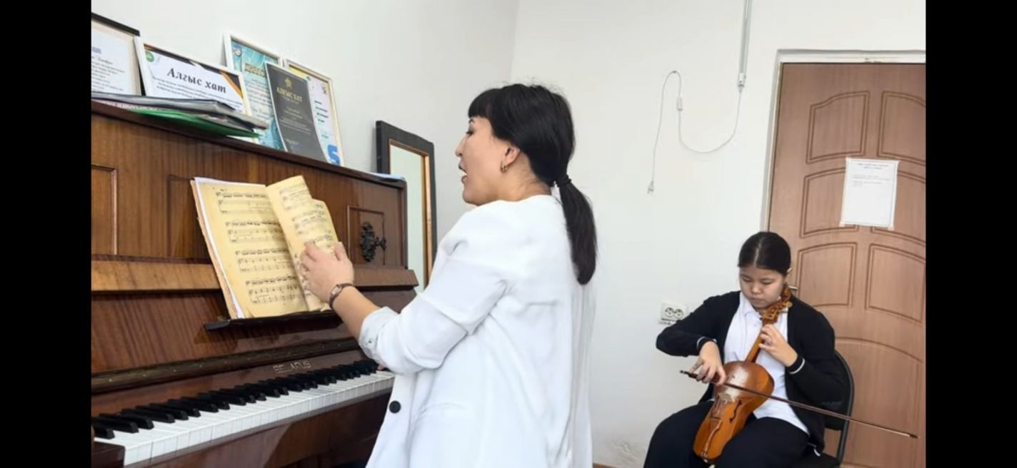 2025 жылдың 10 желтоқсан күні Тулетаева Назгул Кайратовна “Қобыз дағдыларын қалыптастыру” атты 3 сынып оқушысы Киргизбаева Малика оқушысымен ашық сабақ өткізді! Сабақтың мақсаттары: оқушының қобызда дұрыс орындау техникасын меңгеру, шығармаларды сезімтал орындау және шығармашылық қабілеттерді дамыту.