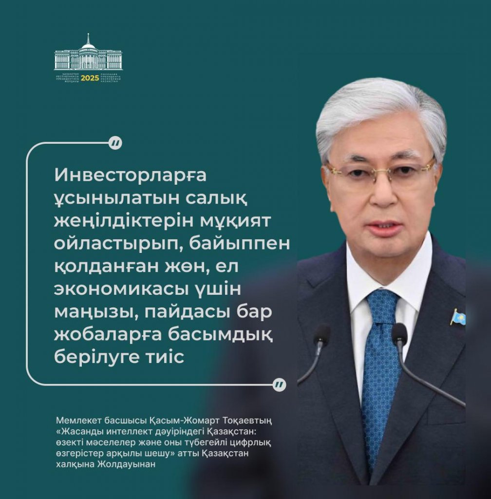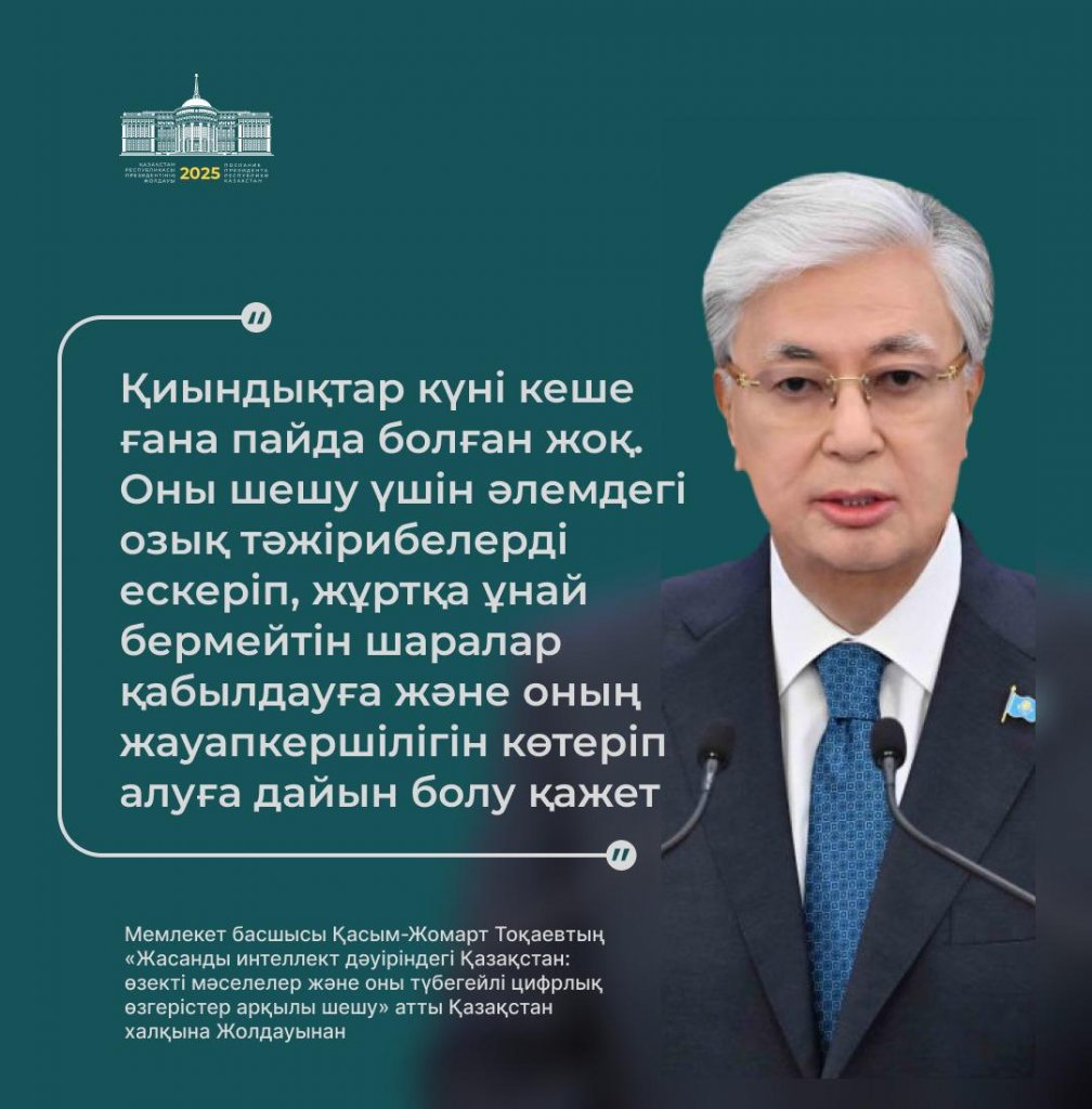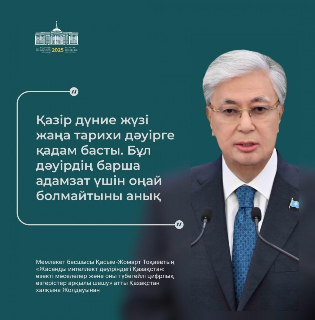Бүгін, 2025 жылғы 8 қыркүйекте, Қазақстан Президенті Қасым-Жомарт Тоқаев Парламент палаталарының бірлескен отырысында халыққа дәстүрлі Жолдауын жариялады!